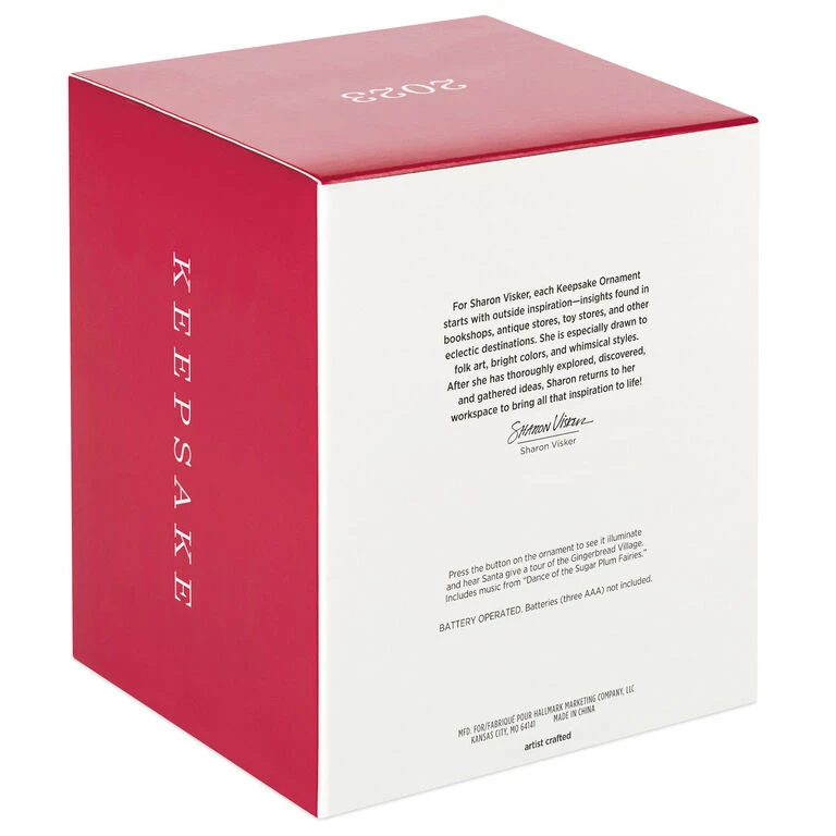 - Key Features: Press the button on the Magic Light, Sound and Motion ornament to see it illuminate and hear Santa give a tour of the Gingerbread Village as the train travels around the track. Includes music from “Dance of the Sugar Plum Fairies.”