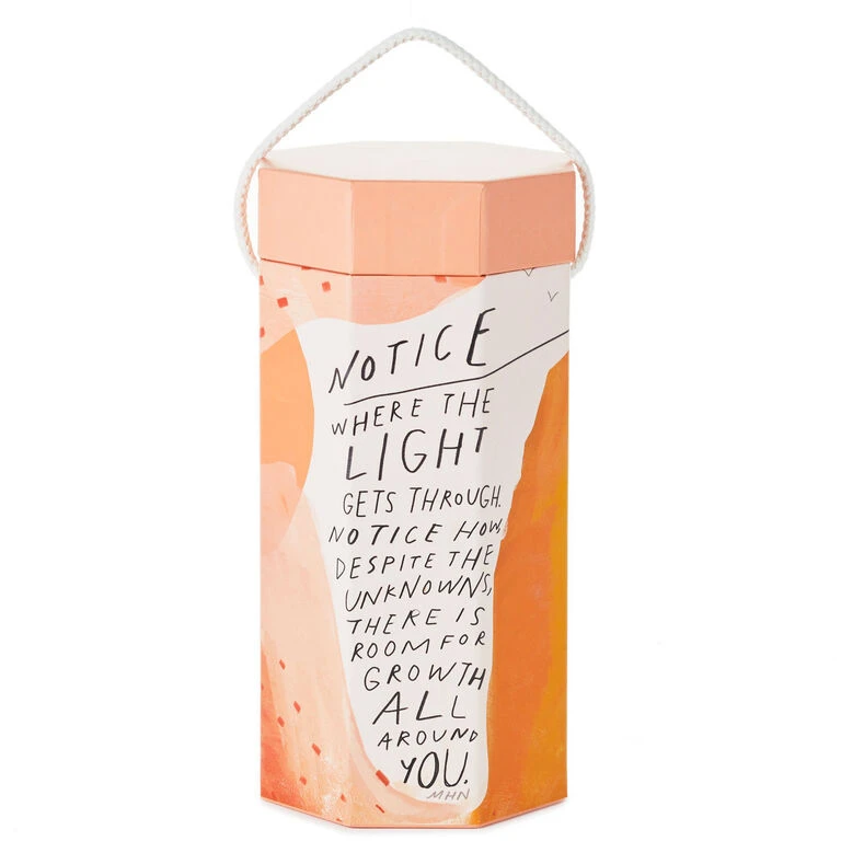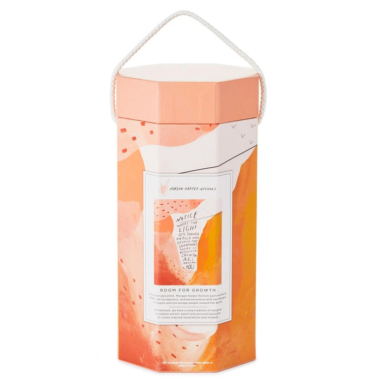 Create an oasis of fun and inspiration with this unique puzzle that features a thought-provoking quote paired with serene, warm-toned art from Morgan Harper Nichols. This 1,000-piece puzzle features a colorful orange, pink and coral design with hand lettering, and comes packaged in a pretty, octagonal box with a carrying handle. Totable puzzle is perfect for a graduation, wedding, birthday or new home gift. As a poet and artist, Morgan Harper Nichols pairs words of hope, self-acceptance, and perseverance with her designs to inspire and encourage people around the world.